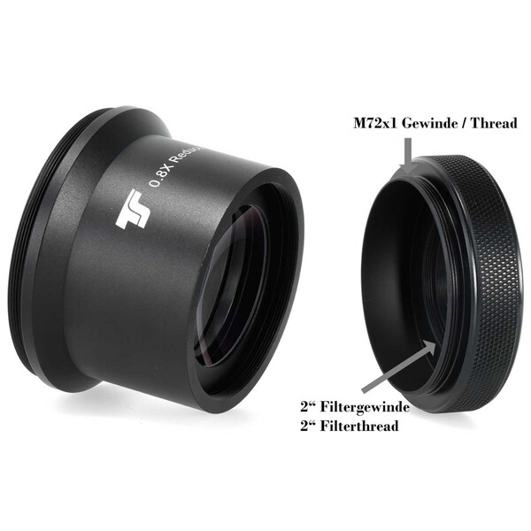 La fonction réducteur (réduction de la distance focale) de cet accessoire optique diminue le rapport d'ouverture. Le temps d'exposition requis est plus court, l'optique est "plus rapide". De plus, comme le champ de vision augmente, des objets célestes encore plus vastes peuvent être observés ou photographiés.
