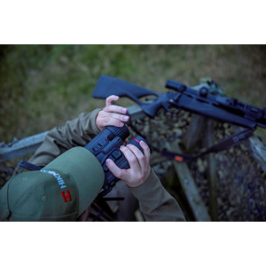 La sangle de transport pour jumelles assure une protection optimale de vos jumelles et est extrêmement confortable. Que vous soyez à l'affût, à quatre pattes ou accroupi, la sangle de transport maintient les jumelles HABROK Pro fermement contre votre poitrine. Vous avez toujours vos jumelles à portée de main.