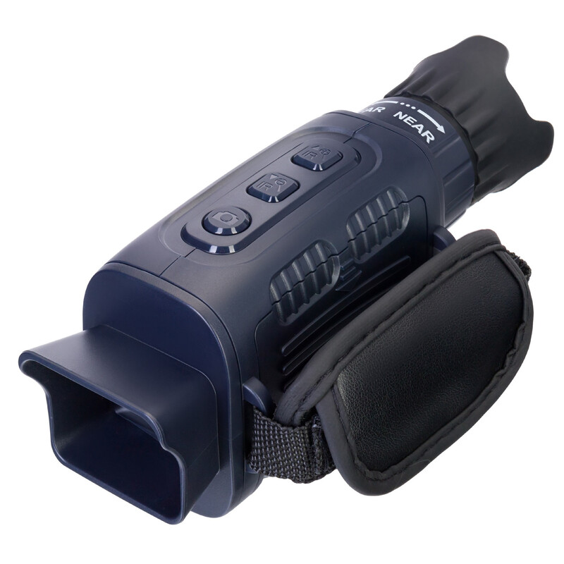 Le système optique numérique de cet instrument est logé dans un boîtier étanche (IP54) au design ergonomique. Le télescope tient bien en main. Les batteries ont une autonomie de 4 à 10 heures, selon l'intensité de l'éclairage IR utilisé. L'instrument est livré avec un trépied de table, idéal pour les observations stationnaires de longue durée et la stabilisation de l'image lors de l'enregistrement vidéo.