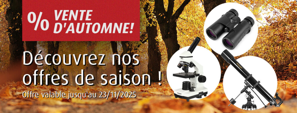 Que ce soit un oculaire, une monture ou un télescope : dans nos offres d’automne, chacun trouvera son équipement préféré !