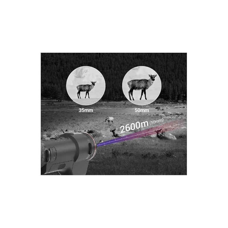 Différents modèles avec différentes distances focales rendent la série TJ LRF Pro très pratique pour l'observation à longue distance et la chasse. La lentille 50 mm F1.0 peut détecter des cibles jusqu'à 2600 m.
