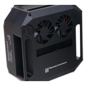 Le refroidissement thermoélectrique régulé est capable de refroidir le capteur CMOS à une température inférieure de 40 à 45 °C à la température ambiante, selon le type de caméra. Le côté chaud du module Peltier est refroidi par des ventilateurs. La température du capteur est régulée avec une précision de ±0,1 °C. La forte baisse de température et la régulation précise garantissent un courant d'obscurité très faible lors de longues expositions et permettent un calibrage correct de l'image.