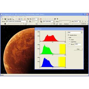 La caméra d'astronomie DMK 31AF03 rassemblent trois caractéristiques, en fait paradoxales pour l'astrophotographie, qui sont en effet une haute résolution, une haute cadence d'images et un bas prix. Avec le logiciel inclus IC Capture.AS, vous enregistrez les images non compressées et sans perte sous un fichier AVI.