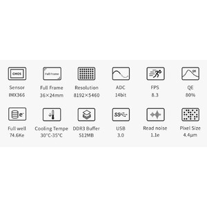 Le tampon d'image interne DDR3 de 512 Mo réduit efficacement la pression sur les transferts informatiques. Cela est d'une grande aide pour la photographie planétaire, où de grandes quantités de données doivent souvent être écrites en peu de temps. Certains appareils de prise de vue du ciel profond actuellement sur le marché n'ont souvent que 256 Mo. C'est un véritable goulet d'étranglement et une source d'erreurs d'images.