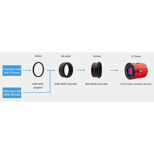 Adaptateur d'inclinaison : l'ASI4400MC Pro dispose de trois paires de vis de réglage pour l'inclinaison du capteur. Chaque paire se compose d'une vis de pression et d'une vis de traction qui vous permettent d'ajuster avec précision l'alignement du capteur par rapport à l'axe optique de votre télescope. Cet ajustement permet de corriger même les inclinaisons légères qui peuvent entraîner une distorsion ou un flou des étoiles sur les bords de l'image. Cela garantit une mise au point nette et uniforme sur l'ensemble de l'image.