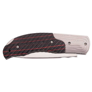 Ce couteau de poche élégant de la marque Herbertz est équipé d'une lame polie miroir en acier inoxydable AISI 420. Un verrouillage Back Lock bloque la lame de manière fiable. Le manche est composé de mitres en acier inoxydable et de bois Pakkaholz rouge et noir. Grâce à sa forme ergonomique et à la structure de la surface des plaquettes, le couteau tient bien en main.