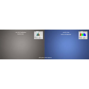 La particularité du générateur Flatfield réside dans le fait qu'il fournit une lumière très neutre en termes de couleurs, c'est-à-dire que les canaux de couleur sont saturés de manière égale, ce qui constitue la base idéale pour un flat réussi. De plus, l'éclairage est extrêmement homogène.