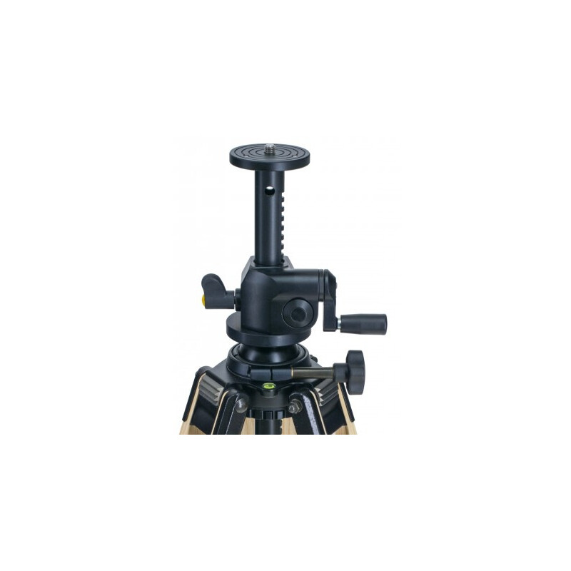 Le trépied est équipé d'inserts modulaires 4K. La hauteur maximale indiquée est avec la colonne centrale à manivelle de 50 cm déployée.