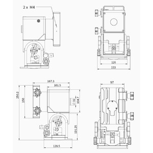 - La selle de montage permet l'utilisation de rails prismatiques conformes aux normes Vixen ou Losmandy. Ainsi, presque tous les télescopes peuvent être montés.