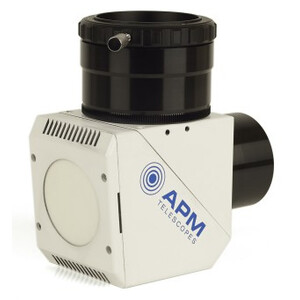 Ce prisme de Herschel d'APM est équipé d'un disque diffuseur en céramique, d'un filtre ND3 intégré et d'un filtre polarisant interchangeable. Tous les filtres sont bien sûr traités multicouche ! Il est possible de régler la luminosité de l'image par rotation du filtre polarisant. Ainsi, le prisme de Herschel peut être utilisé tant en visuel qu'en photographie !