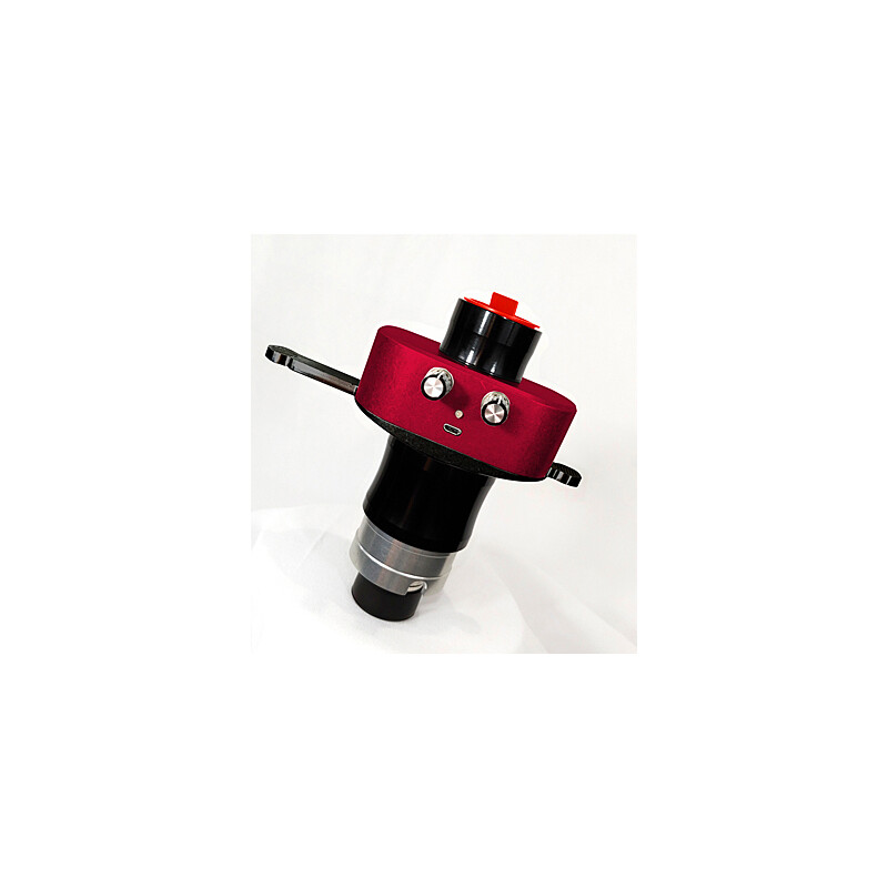 Le nouveau tout-en-un combine une lentille de Barlow télécentrique 4,2 fois de haute qualité et un filtre H-alpha dans un accessoire simple. Devant la lentille de Barlow se trouve filtre bloquant de 12 mm et derrière, un filtre étalon conventionnel. La conception optique a été optimisée pour une longueur d'onde de 656 nm et génère un champ d'image plan pour l'observation visuelle et la photographie.