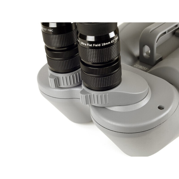 Ces jumelles SA-Apo à 2 lentilles, dont la correction sphérique est excellente, offrent un contraste extrêmement élevé. La correction des couleurs, le contraste et la transmission sont équivalents à d'autres jumelles japonaises qui coûtent nettement plus cher. Nous avons inclus 1 jeu d'oculaires de 18 mm dans l'équipement de base.