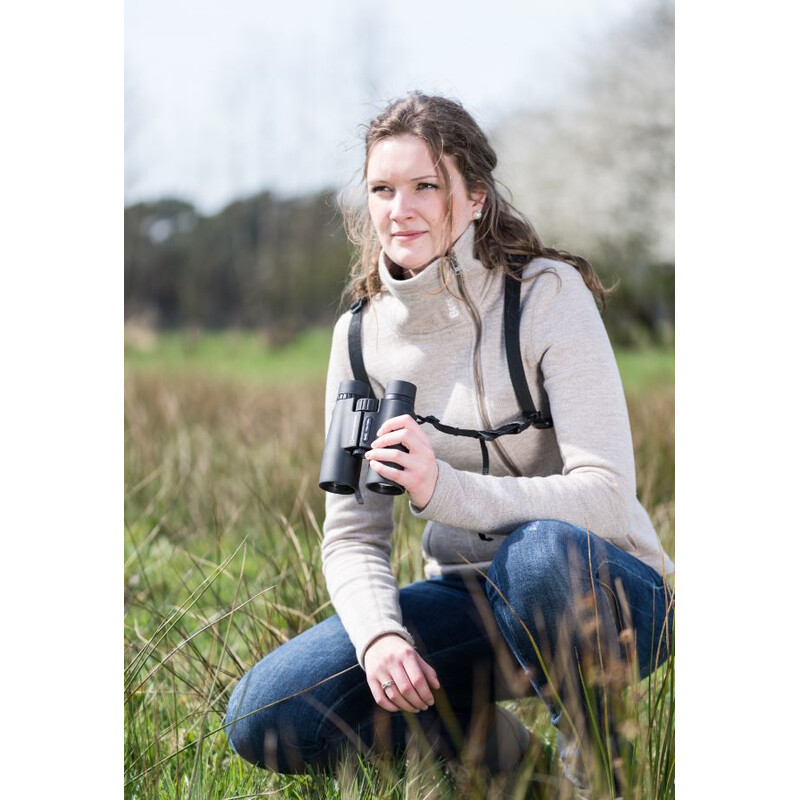Météo défavorable et terrain accidenté : la nature peut parfois être rude. C'est pourquoi les jumelles sont dotées d'une surface caoutchoutée et anti-salissures, ce qui les rend faciles à tenir en main. Vous avez trouvé un endroit où il vaut la peine de faire de longues observations ? Fixez alors facilement les jumelles à un trépied grâce au filetage pour trépied. Le transport en toute sécurité à travers bois et champs est également assuré : les jumelles sont livrées avec une courroie de transport robuste et un sac.
