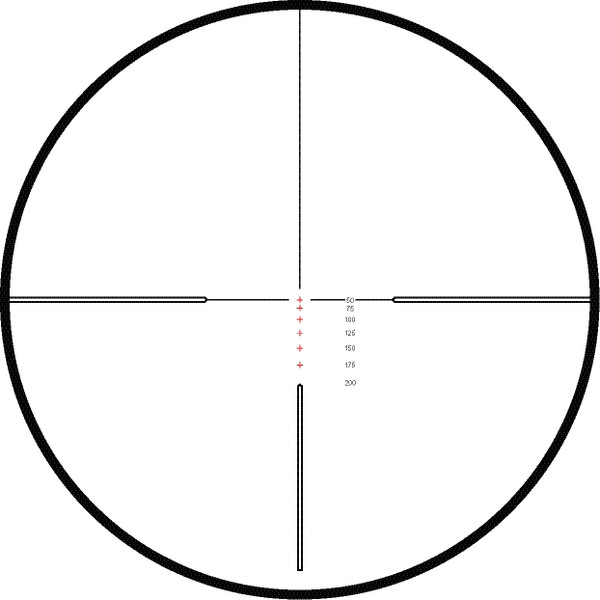 Réticule tactique pour le calibre .22 LR HV (1260 fps). À grossissement maximal, régler sur 50 yards pour obtenir des points d'impact calculés avec précision.