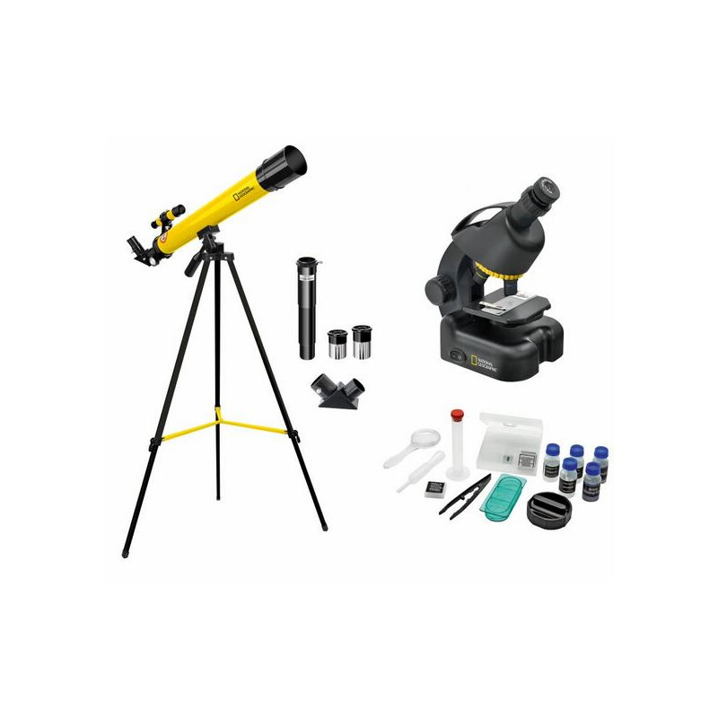 Le National Geographic Tele-Micro Set a tout pour vous permettre d'explorer et de découvrir le monde de l'astronomie et de la microscopie. Un véritable télescope avec un grossissement de 100 fois et un microscope avec un grossissement de 640 fois. Un ensemble complet d'accessoires pour la microscopie complète ce kit !