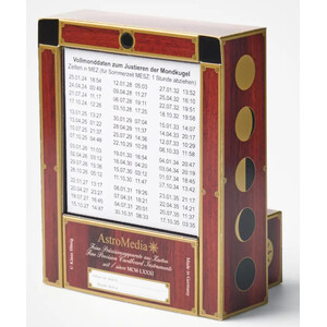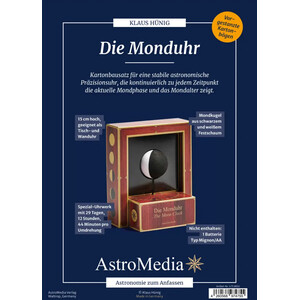 Si l’horloge lunaire d’AstroMedia s’inspire des grandes horloges astronomiques du Moyen Âge, elle est sans doute la première et la seule au monde, en tant qu’horloge murale ou de table, à afficher l’évolution des phases lunaires de cette manière. L’assemblage de ce kit en carton doté d’un mécanisme d’horlogerie spécial est simple et permet d’obtenir rapidement un résultat très raffiné.
