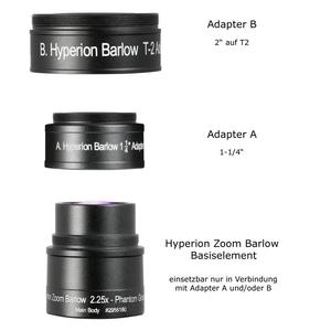 J'ai acheter cette barlow pour l'adapter sur l'occulaire zoom 8x24 serie mark3 hyperion, je déconseille vivement se matériel car, premierement il assombri beaucoup la luminosité, sans parler du chromatisme élever !! et franchement j'ai tester d'autre barlow, moin couteuse type ploss et de qualiter suppérieur, qui sont exempt de chromatisme, de+ on fait tout une pub sur les forums ect sur la qualiter hypérion il ne m'errite vraiment pas leur réputation, mise a part cette histoire de modularité dans cette gamme, ces le seul point positif, et j'ai tester se matériel sur de gros newton, y compris sur des smith cassegrain de chez céléstron en observation térreste et astronomique.