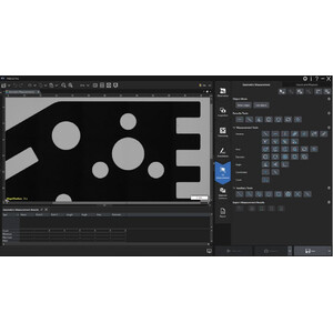 Mesures interactives avancées, y compris la détection automatique des bords et les lignes auxiliaires (ligne arbitraire, ligne verticale, ligne horizontale, distance entre deux cercles, polyligne, polyligne à main levée, règle linéaire, ligne perpendiculaire, lignes perpendiculaires multiples, lignes parallèles multiples, épaisseur de rétrécissement, polygone à main levée, polygone fermé, polygone interpolé, baguette magique, rectangle, rectangle pivoté, cercle à 2 points, cercle à 3 points, cercle avec détection des bords, cercle multipoint, ellipse pivotée, angle à 3 points, angle à 4 points, règle angulaire, coordonnées de points, centre, nombre de points)