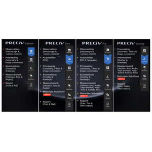PRECiV Pro est la version la plus puissante et la plus polyvalente du logiciel et dispose de toutes les fonctionnalités. La version Pro dispose des outils nécessaires pour les clients des domaines de l'assurance qualité/contrôle qualité, de l'analyse des défauts et pour tous ceux qui doivent créer des rapports d'analyse et des mesures pour valider un échantillon ou un lot de production.