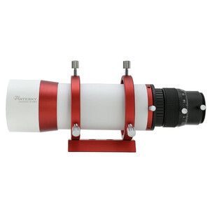 La livraison comprend deux colliers d'attache pour lunette de visée de 80 mm et trois vis à pointe en nylon, ainsi qu'un rail prismatique Vixen (niveau GP) court qui permet le raccordement à la plupart des lunettes de visée courantes avec profil standard.