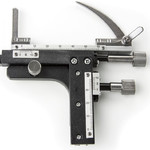 - L'objectif zoom central avec écran intégré et éclairage annulaire LED est monté sur un système à crémaillère qui repose sur un trépied métallique de 30 x 180 mm.