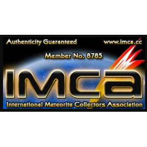 L'authenticité de la pierre est garantie par l'adhésion du fournisseur à l'I.M.C.A. (International Meteorite Collectors Association) : numéros d'adhérent 3850 et 8785.