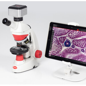 Un microscope numérique d'apprentissage pour débutants. La caméra Wi-Fi avec une résolution de 4 MP permet un transfert rapide des images vers des tablettes et des smartphones. Une poignée de transport, un faible encombrement pour un rangement facile et des vis encastrées pour éviter tout déréglage accidentel des oculaires et du tube font du RED50X Plus le compagnon idéal dans le domaine scolaire.