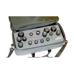 Le sac pour oculaires souple peut protéger jusqu'à 13 oculaires de tout type, y compris les oculaires Nagler de 31mm de diamètre. Vous pouvez y ranger des accessoires supplémentaires comme un binoculaire. La mousse synthétique prédécoupée est assez ferme pour ne pas faire glisser les éléments optiques et dispose d'une profondeur et de dimensions adéquates pour recevoir une multitude d'oculaires de différents types et de l'accessoire divers. Les différents compartiments offrent une grande variation de rangement. Le sac ne plie pas même si toute la capacité est utilisée. Le design du sac est caractérisé par des couleurs grises et par l'utilisation, pour sa fabrication, de nylon résistant. Il y a des poignées de transport et une bandoulière.