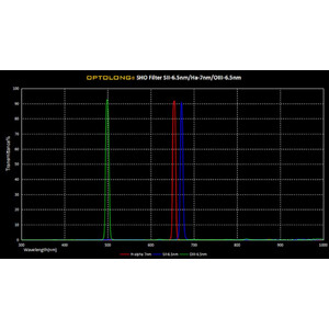 Les filtres à bande étroite permettent d'augmenter le contraste en ne laissant passer qu'une plage de longueurs d'onde déterminée de la lumière autour des lignes spectrales de l'hydrogène (H-a, 656 nm), de l'oxygène (OIII, 501 nm), du soufre (SII, 672 nm), etc. Les filtres peuvent toujours être utilisés pour la photographie, même lorsque la Lune est présente dans le ciel, ou comme filtre anti-pollution lumineuse dans une grande ville. La durée du temps d'exposition ne joue aucun rôle - il est également possible de réaliser des photographies de longue durée.
