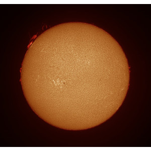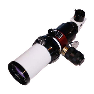 Cette lunette solaire complète est un achromate de haute qualité, la lentille frontale réduit la lumière réfléchie de moitié par rapport à un achromate normal. Elle élimine d'éventuel coma, l'astigmatisme, les défauts de centrage et en association avec les lentilles de collimation appropriées forment une lunette solaire à champ plat, sphérique et corrigée. L'image est optimisée pour la netteté la plus élevée possible dans la zone rouge du spectre. Le système optique fonctionne sans obstruction (pas d'obstruction centrale) et convient à la fois pour la surface solaire, ainsi que pour les protubérances. Le tube est réalisé en métal laqué blanc.