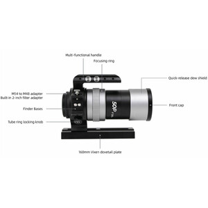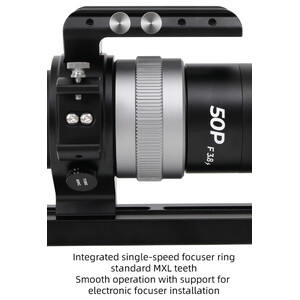 Avec une ouverture de 50 millimètres et une conception rapide f/3,8 sans exigences particulières en matière de backfocus, ce télescope lumineux permet de pratiquer l'astrophotographie mobile sans effort.