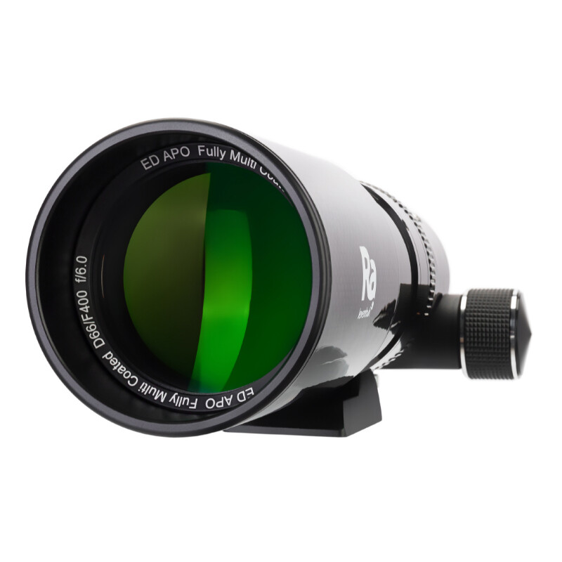 L'optique AP 66/400 dispose d'un objectif à deux lentilles avec élément ED. Grâce à ce verre ED, la dispersion gênante des lentilles est supprimée. La vue à travers la lunette donne une image riche en contrastes sans frange de couleur. Cette caractéristique est particulièrement agréable pour l'observation de la Lune, des planètes lumineuses Jupiter et Saturne, mais aussi pour la photographie et l'observation de la nature.