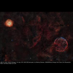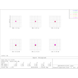 Vous photographiez avec un plein format ou de grands capteurs CCD ? Vous connaissez alors le problème : de nombreuses optiques sont nettes au centre, mais les bords sont flous. L'Omegon Pro APO AP 130/650 Quintuplet est d'un tout autre niveau. Il offre des étoiles nettes et ponctuelles, même dans les coins les plus éloignés et sur tout le champ de l'image.