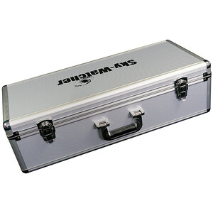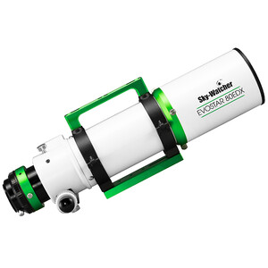 Ce télescope réfracteur à grand champ est idéal pour les vacanciers et les voyageurs, cette lunette compacte offre des vues d'ensemble avec un contraste élevé et une image nette. Avec une ouverture de 80mm et 600mm de focale, cette lunette à double lentille ED a d'excellentes qualités d'image et offre aux astrophotographes avec un rapport d'ouverture de f / 7,5 un système optique rapide. En utilisant des lentilles ED en verre FPL-53 presque toutes les aberrations chromatiques visibles sont réduites. Les lentilles ED (Extra Low DISPERSION) assurent une dispersion très faible des couleurs et ont un faible indice de réfraction. En combinant ces lentilles spéciales avec des lentilles en verre optique différent on obtient une très bonne correction de l'aberration chromatique. Les lentilles crown de la marque allemande Schott sont intégrées pour obtenir un meilleur contraste. Le revêtement Metallic High Transmission Coating des lentilles permet une transmission lumineuse élevée. Les photographes aprécieront leur investissement, surtout en observant des objets comme la galaxie d'Andromède ou le célèbre amas d'étoiles ouvert des Pléiades qui sont des objets célestes très bien mis en valeur par cette longueur focale. Le tube a une mise au point Crayford avec un coulant de 2". La lunette peut aussi être utilisée comme une lunette de visée ou comme un deuxième dispositif d'enregistrement pour les astrophotographes. Par sa courte focale elle est idéale pour une utilisation avec un autoguidage. Dans le domaine de l'observation de la nature, la lunette sera transformé en puissante longue vue, avec de nombreuse options de connectivité. Cette lunette est un véritable joyau: elle a un élégant design de trè haut niveau, tube et chercheur sont de ton noir, très esthétique.