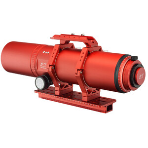 Le rail de prisme fourni offre deux possibilités de raccordement : Pour visser avec un filetage photo, via une fixation Arca-Swiss ou pour insérer dans une pince à prisme selon le standard Losmandy. Avec ces options, il ne devrait y avoir aucun problème pour monter le télescope sur tous les trépieds photo, supports pour appareils photo ou montures astronomiques courants.