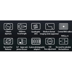 Au lieu d'acheter un aplanisseur supplémentaire, de calculer la distance focale arrière de l'aplanisseur ou d'effectuer un raccordement fastidieux pour régler la distance correcte, les astrophotographes peuvent simplement équiper cet apochromatique de tous les accessoires photographiques possibles, et l'ensemble du système optique est alors parfaitement réglé pour la prise de vue. La prise de vue ne nécessite plus aucune correction externe/aplanissement du champ par un flattener/correcteur !